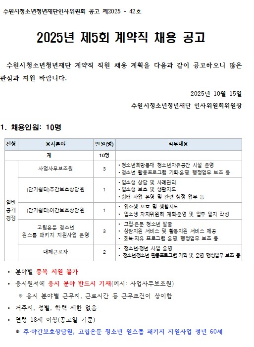 2025 서충주청소년문화의집 육아휴직 대체인력(계약직) 채용 공고