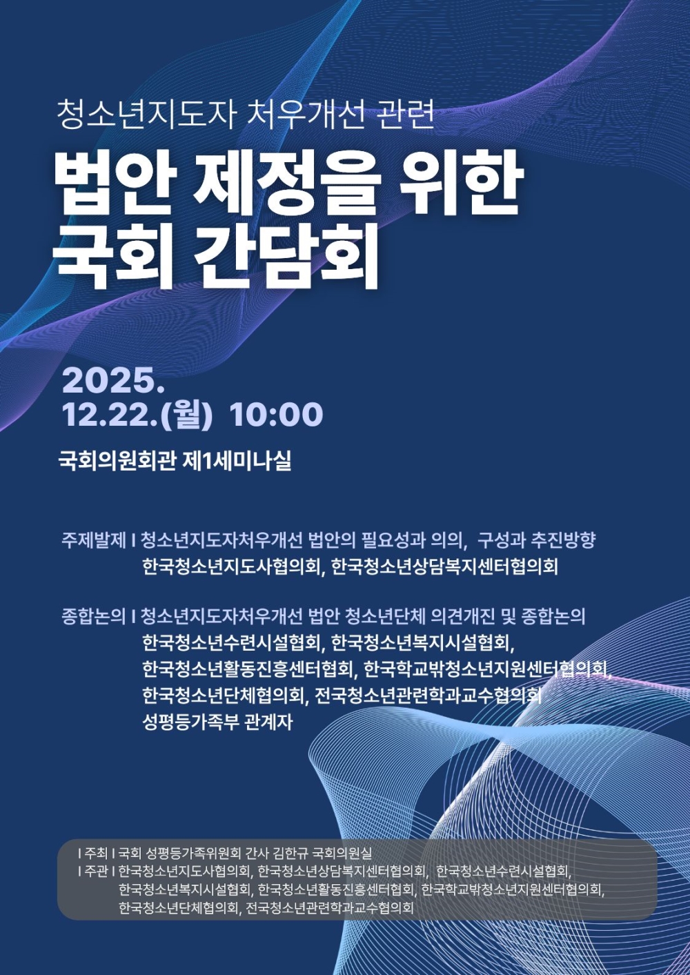 2025년 12월 22일(월) 오전 10시, 국회의원회관 제1세미나실에서 개최됩니다.